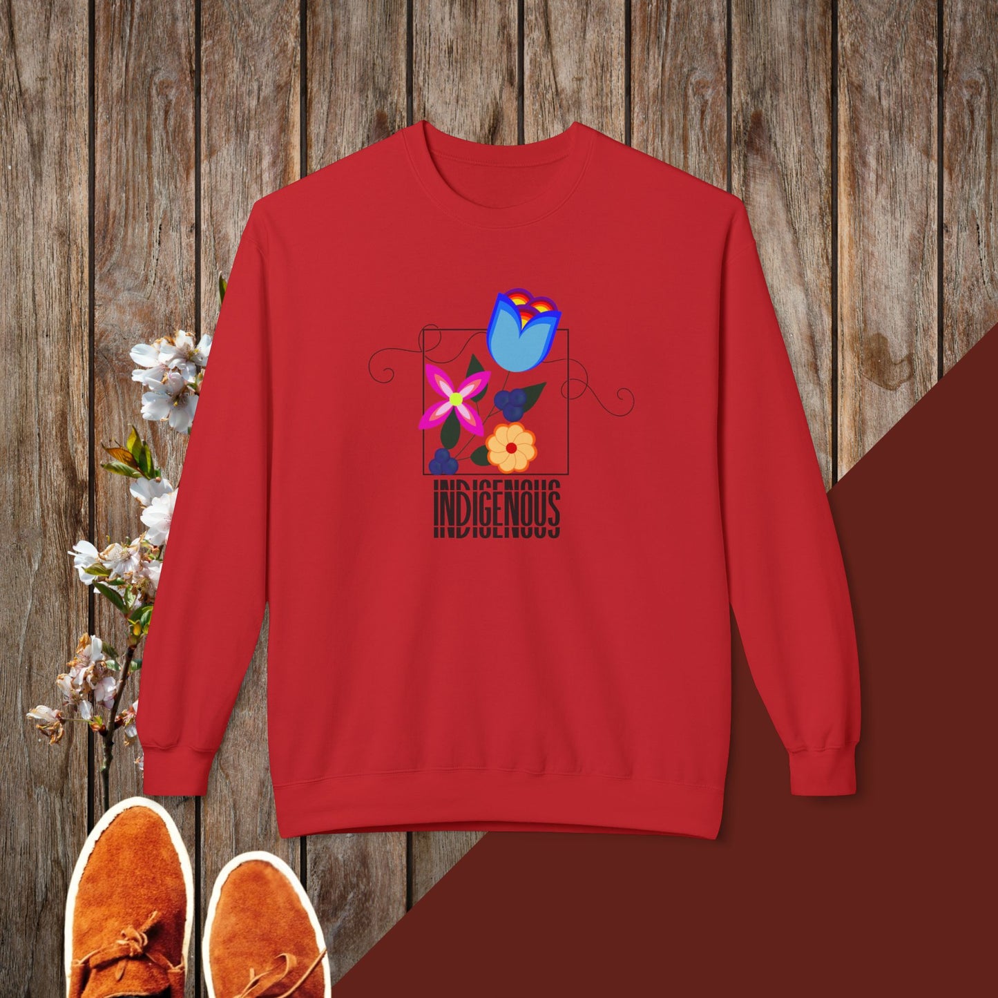 Indigenous Flower Design Unisex Midweight Softstyle Fleece Crewneck Sweatshirt